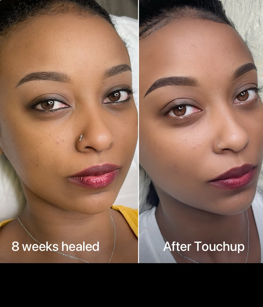 Over time, the initial pigment may fade or the eyebrow may soften. A touch-up session allows us to reinforce and refine the brows, ensuring they continue to look natural and well-defined.
